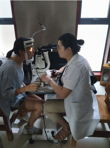 仪式上,学生代表提出了健康倡议。现场还开展了健康咨询活动,医生们用仪器为学生检测双眼健康情况,同学们都争先排队检测。